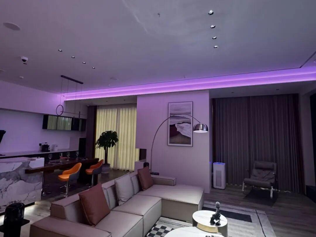 而且全屋智能燈光能夠結合語音控制,或者是手機app遠程操作,非常的方便。