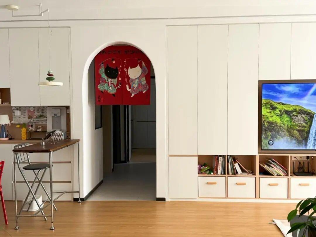 日子長了你會發現,這些嵌入式收納櫃,實現了視覺的整潔統一,不會顯得壓抑。