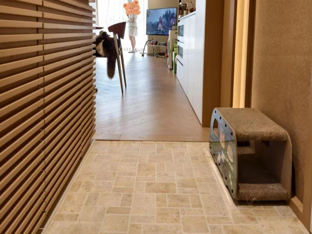 玄關落塵區在層高允許的情況下,可以做成1~2釐米的微差就可以了,避免絆腳帶來危險。