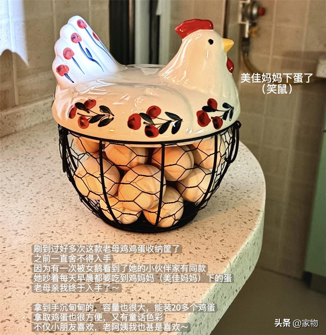經常看到有人推薦的雞蛋筐,底部是鐵藝編織而成,蓋子則做成了一個彩繪陶瓷的老母雞造型,看上去頗具美式田園風格,放在廚房裏就像是個精心準備的裝飾品,又可愛又有趣,真的讓人忍俊不禁。