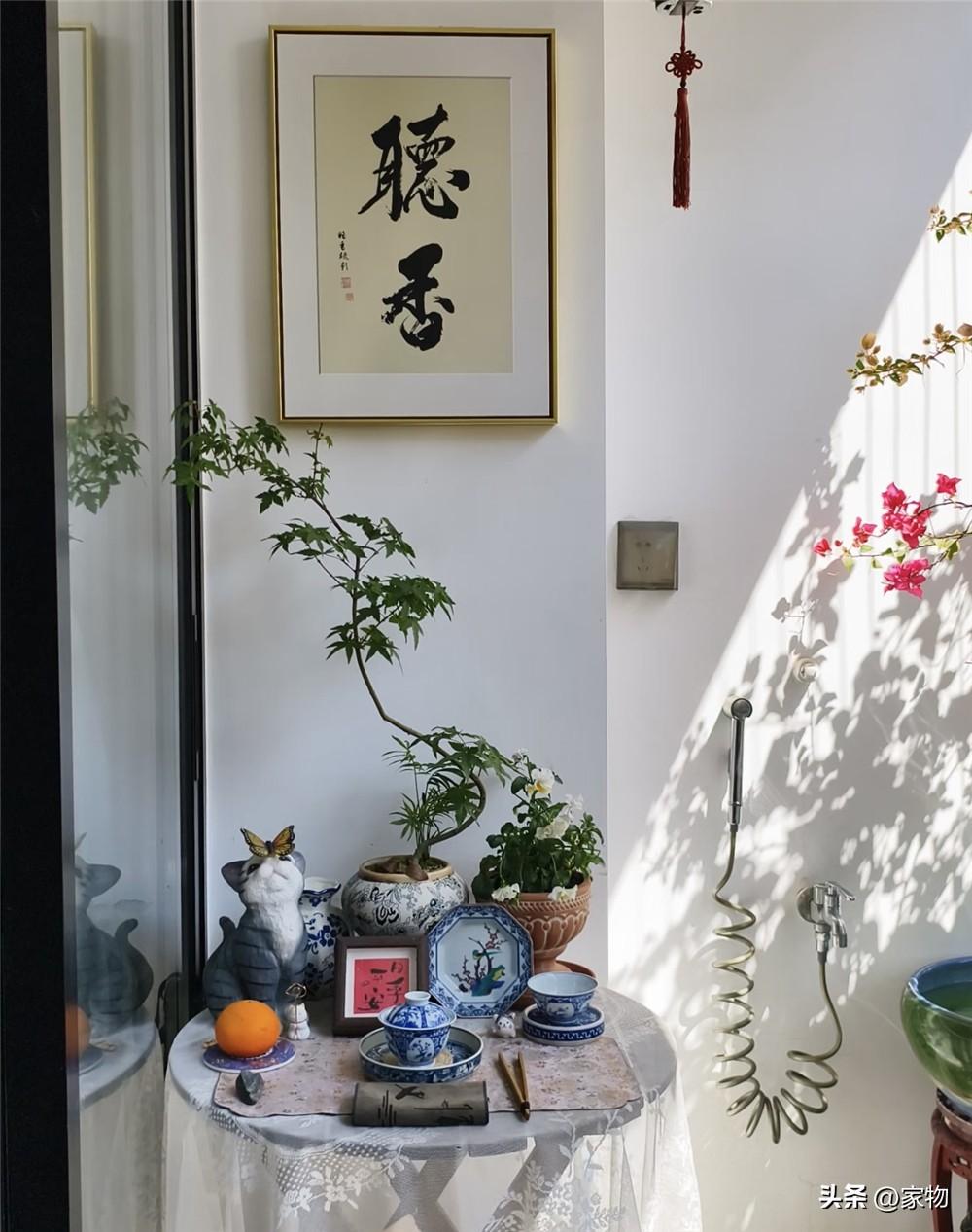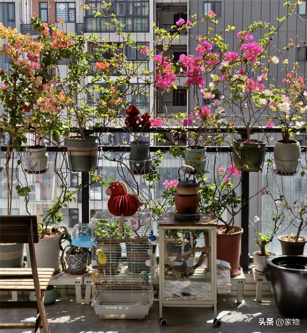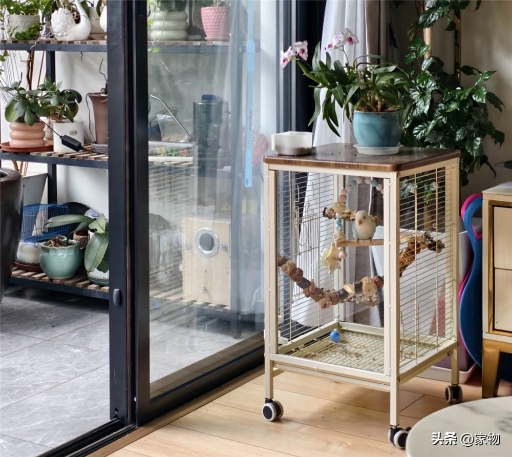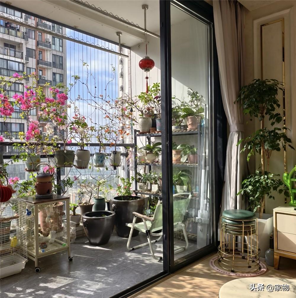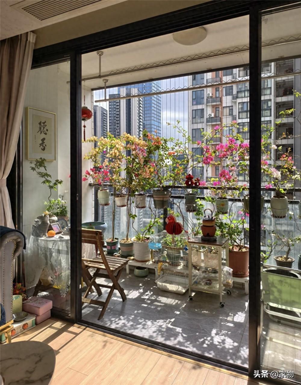 這不,最近我就看到了一位深圳主婦太太(@Grace麻麻),曬出了自己家裏的陽臺裝修,它保留了原本的開放式陽臺,並重新做了推拉門隔斷和保護網,最重要的是,裏面有茶桌、鳥籠和各種花卉綠植,一片生機盎然。