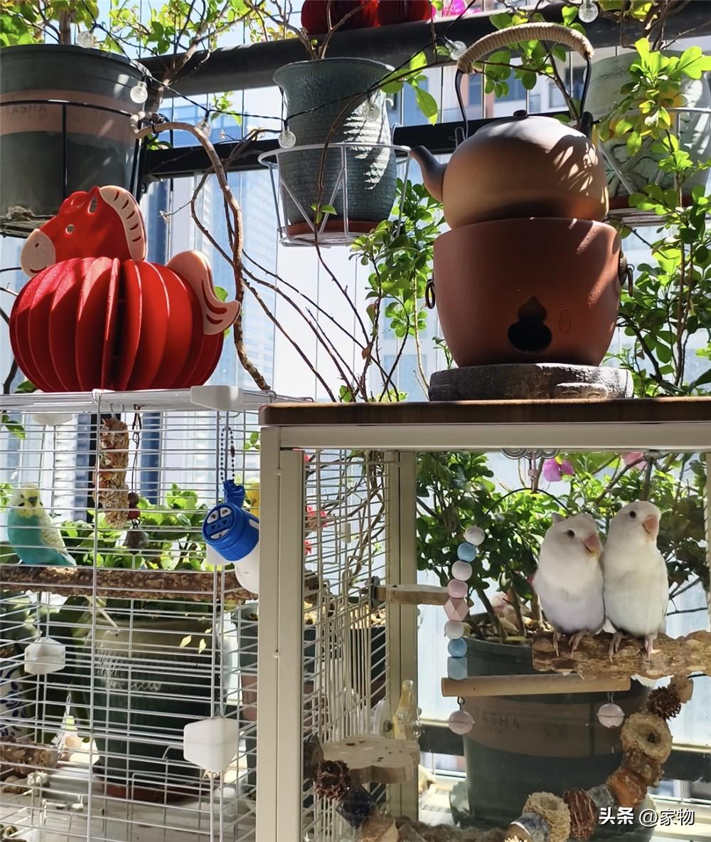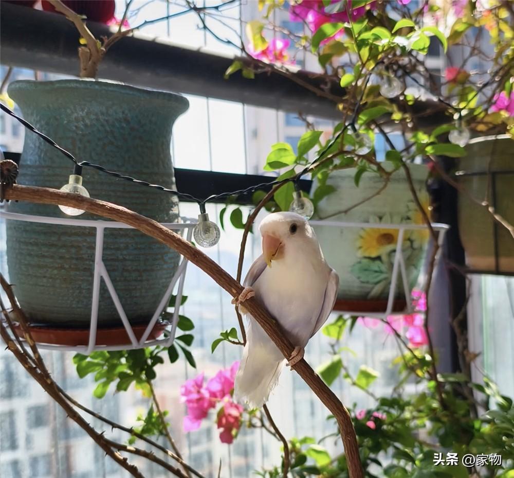 天氣晴好的時候,她會把家裏的小鸚鵡放出來在陽臺自由飛翔,特意留出來的枝丫和護欄,都可以當做這小鳥落腳的地方,用“鳥語花香”四個字來形容這間開放式露天陽臺,真的絲毫都不誇張。