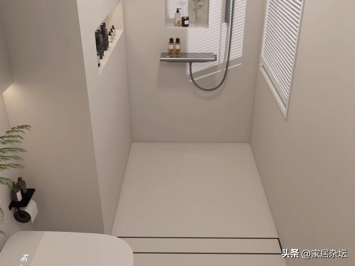 這種做法放棄了傳統的玻璃淋浴房,而是採用2~3釐米的下沉區設計,裏面安裝長條形的隱形地漏。