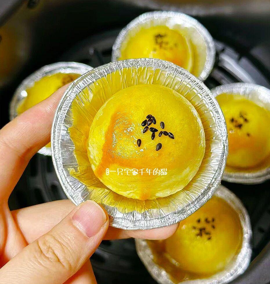 用蛋撻皮包住湯圓,牙籤扎幾下防止炸開,刷上蛋黃液空氣炸鍋170度10分鐘就能出鍋。