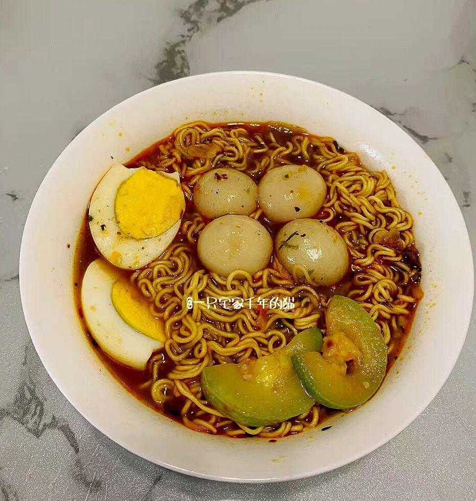 第一次見這個喫法的時候,說實話真的很牴觸,甜的湯圓+鹹的泡麪,這是什麼阿黑暗料理啊!