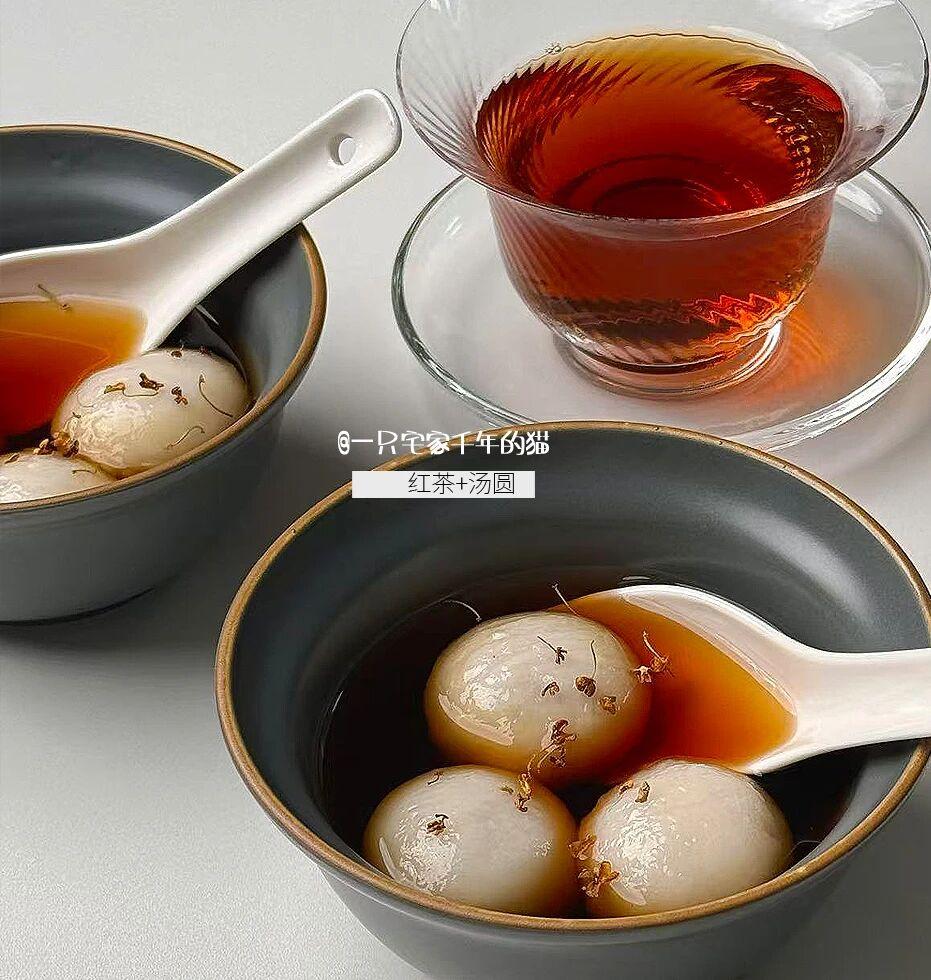 比如,把煮好的湯圓加入普洱茶。