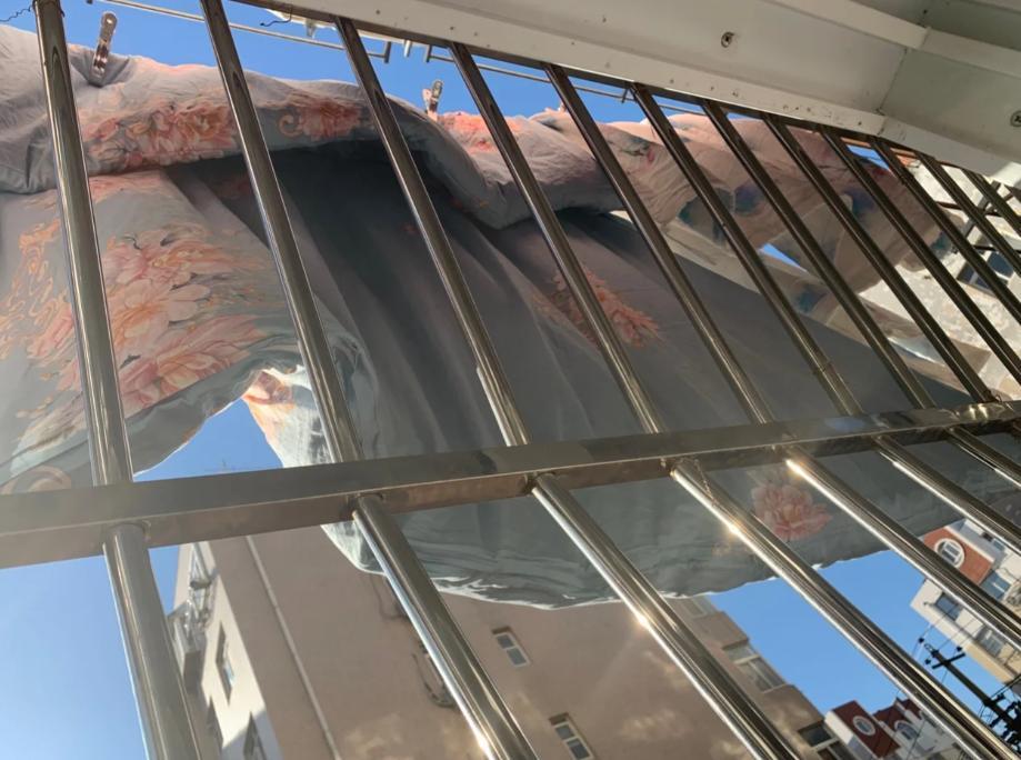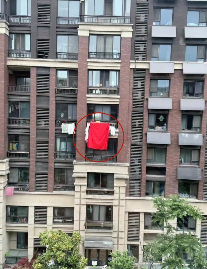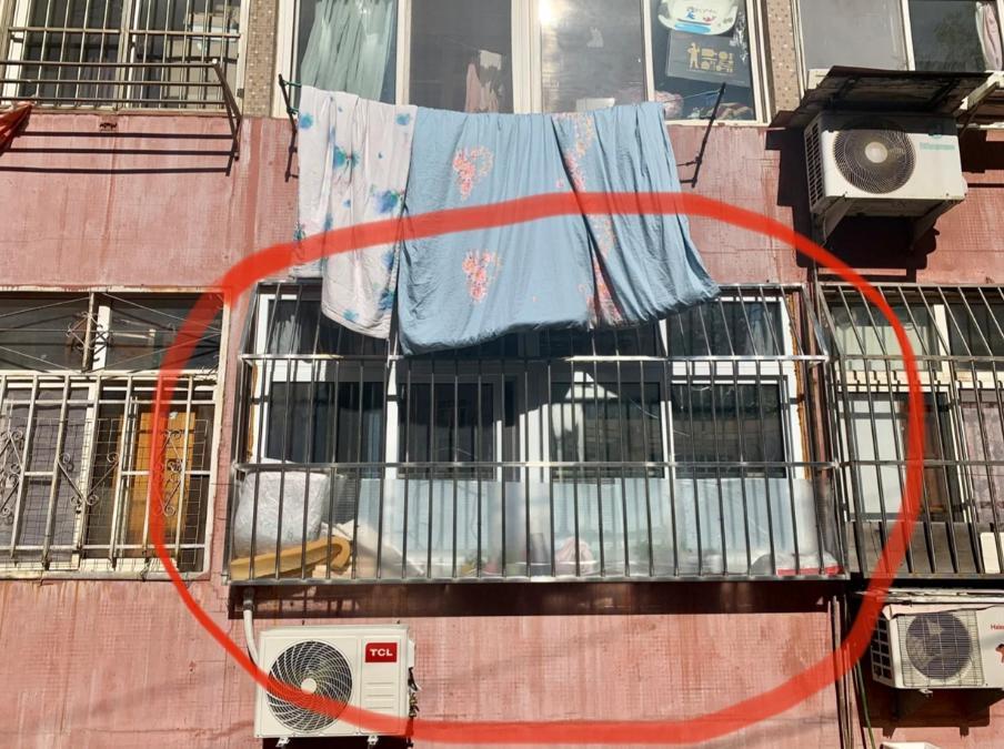 紅色圈圈是我家陽臺,因爲本來就是一樓,而且小戶型只有這一個朝陽窗戶,樓上鄰居只要天氣好準會曬被子牀單。可是每次都會有點擋我家的光。