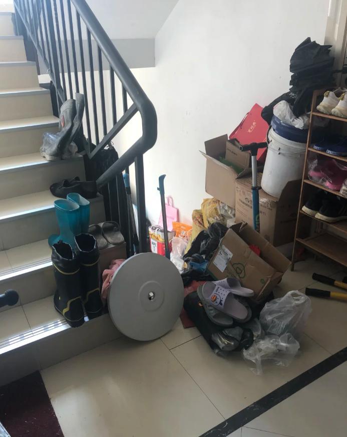 隔壁鄰居也不知道是做什麼的,每天樓梯口堆滿東西,跟物業反饋又沒啥用,唉……每天回家看到這樣心情都不好,高筒靴全往我家這邊靠,昨晚發現垃圾都堆過來!