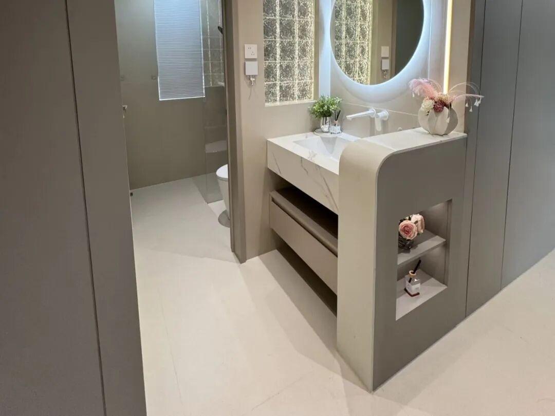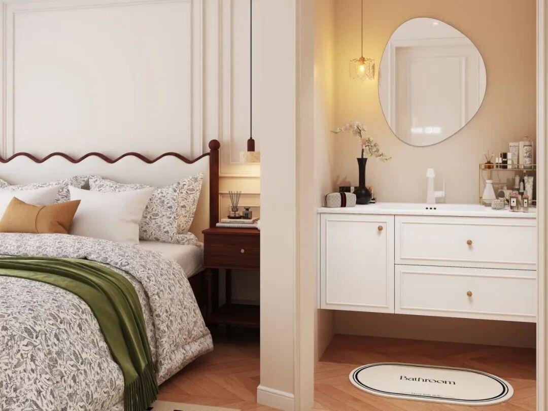 臥室洗漱,特別適合上班族,美妝愛好者,或者是主臥面積大於18平米的戶型。當然了,一定要做好防潮防水。