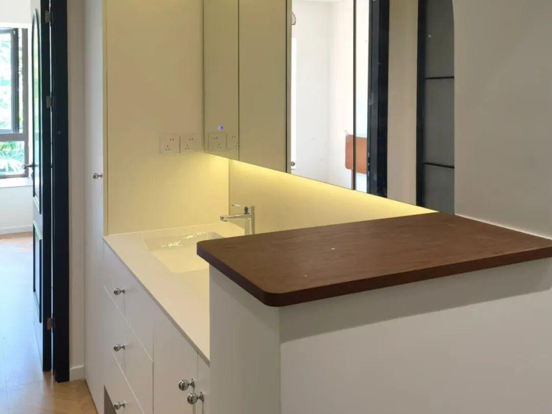 裝修的核心一點,就是將原來在衛生間內的洗手檯,完全移出衛生間。然後形成一個獨立的功能模塊,也就是洗漱區。