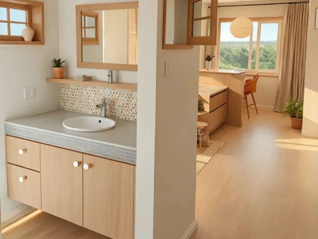 具體做法就是在一側嵌入大概40公分的檯面,完成後就是一個洗漱區。