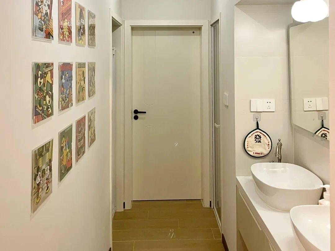 過道嵌入式洗漱區,一般適合於過道比較狹長的戶型,還有一些小面積公寓,有老人或者是幼兒的家庭。