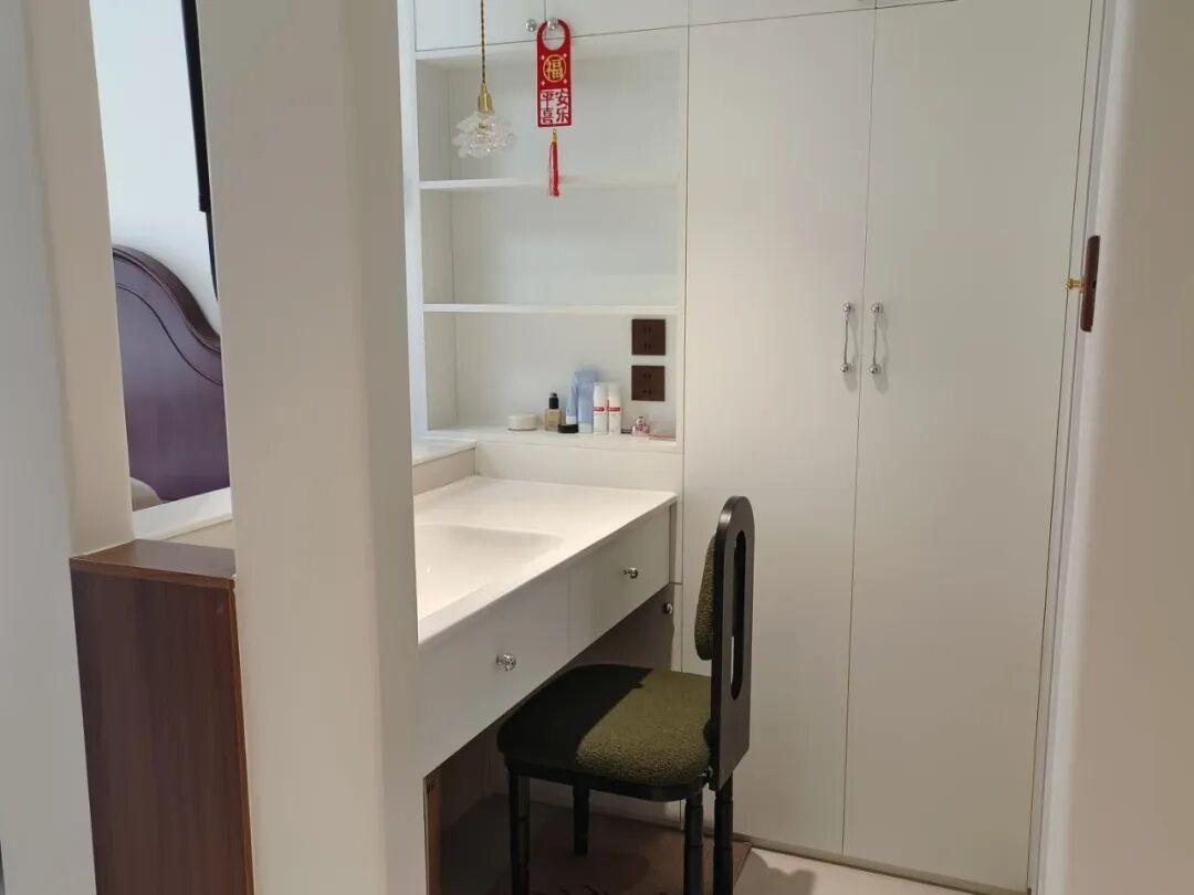 裝修的核心思想是將洗手檯和梳妝檯的功能合併,然後納入臥室睡眠區的生態系統。