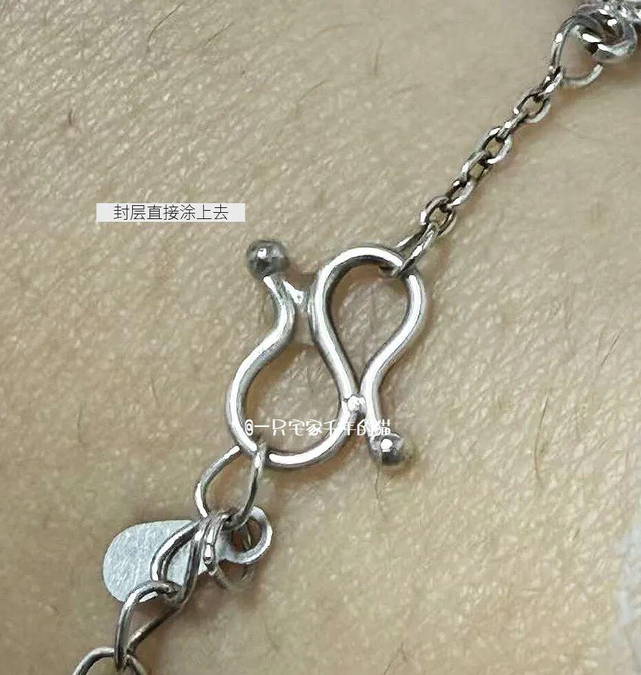 後來,我就直接在手鍊勾纏的彎角處,塗一點封層,形成一個光滑圓潤的弧面,再也沒有了鉤衣服的煩惱。