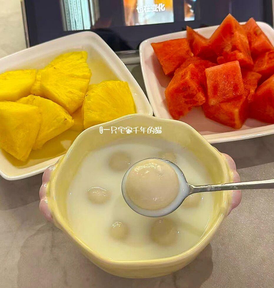 當然,如果有的姐妹覺得麻煩或者不喜歡喝奶茶,可以試試直接用牛奶、椰子替代,也非常的好喫。[溫馨提示:不可以用牛奶替代水來煮熟湯圓哦]