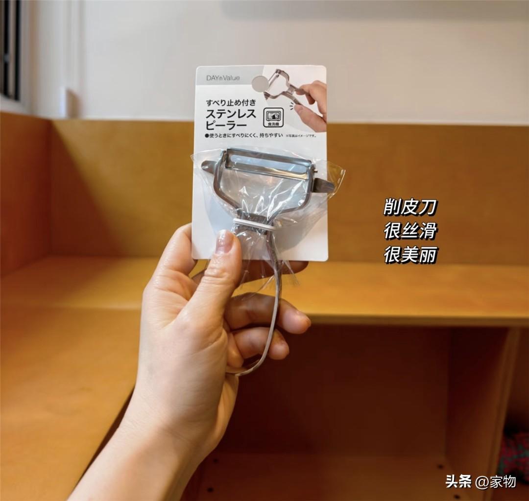 和無印良品的削皮刀很像,都是完全的不鏽鋼材質,加寬的弧形握柄,拿在手裏很趁手。