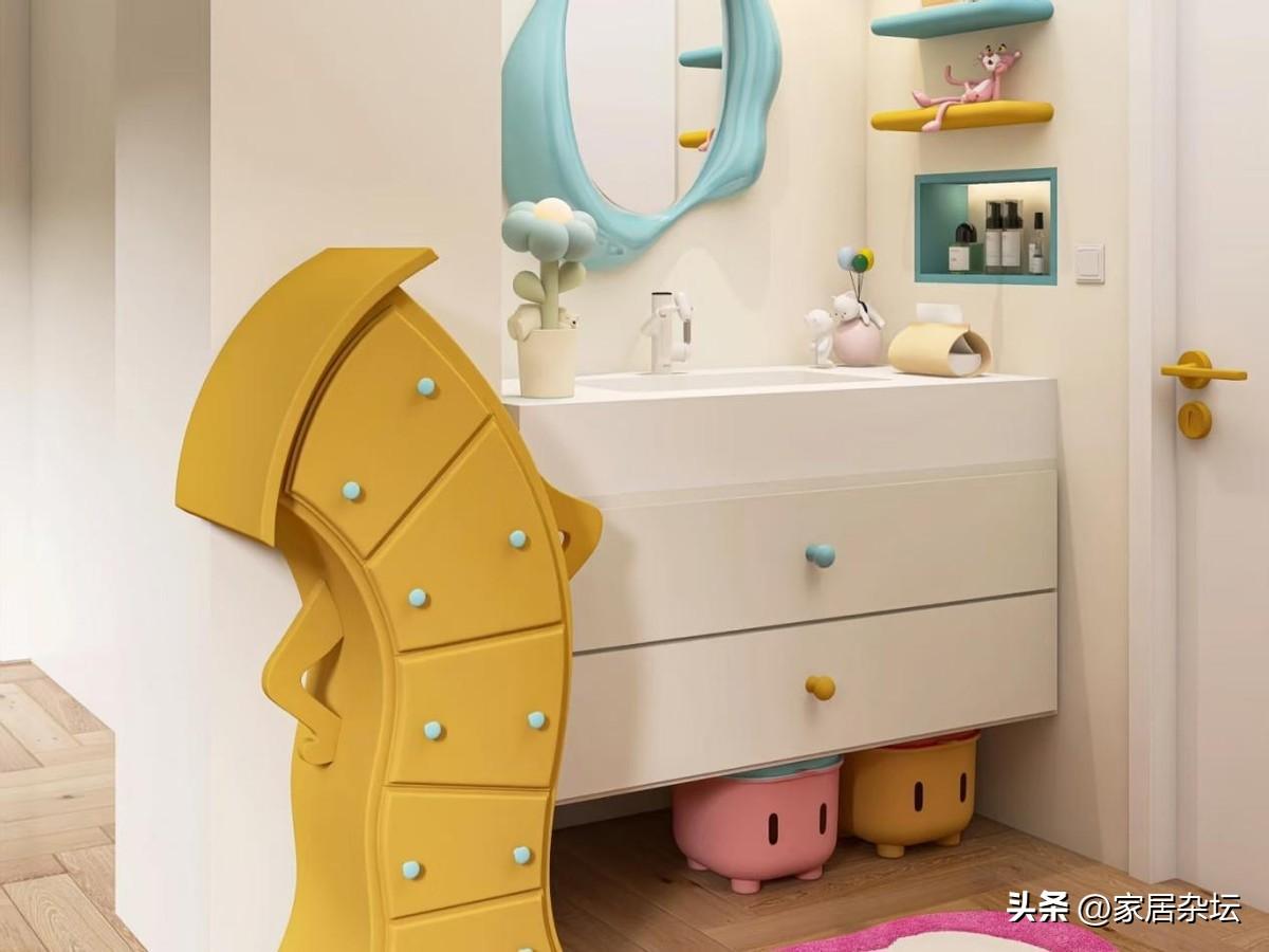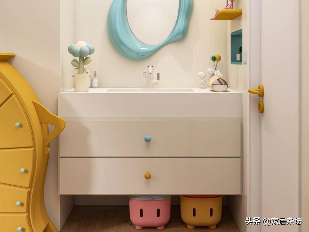 衛生間不放洗手檯,還有一種裝修設計,就是爲兒童設計專用洗漱區。