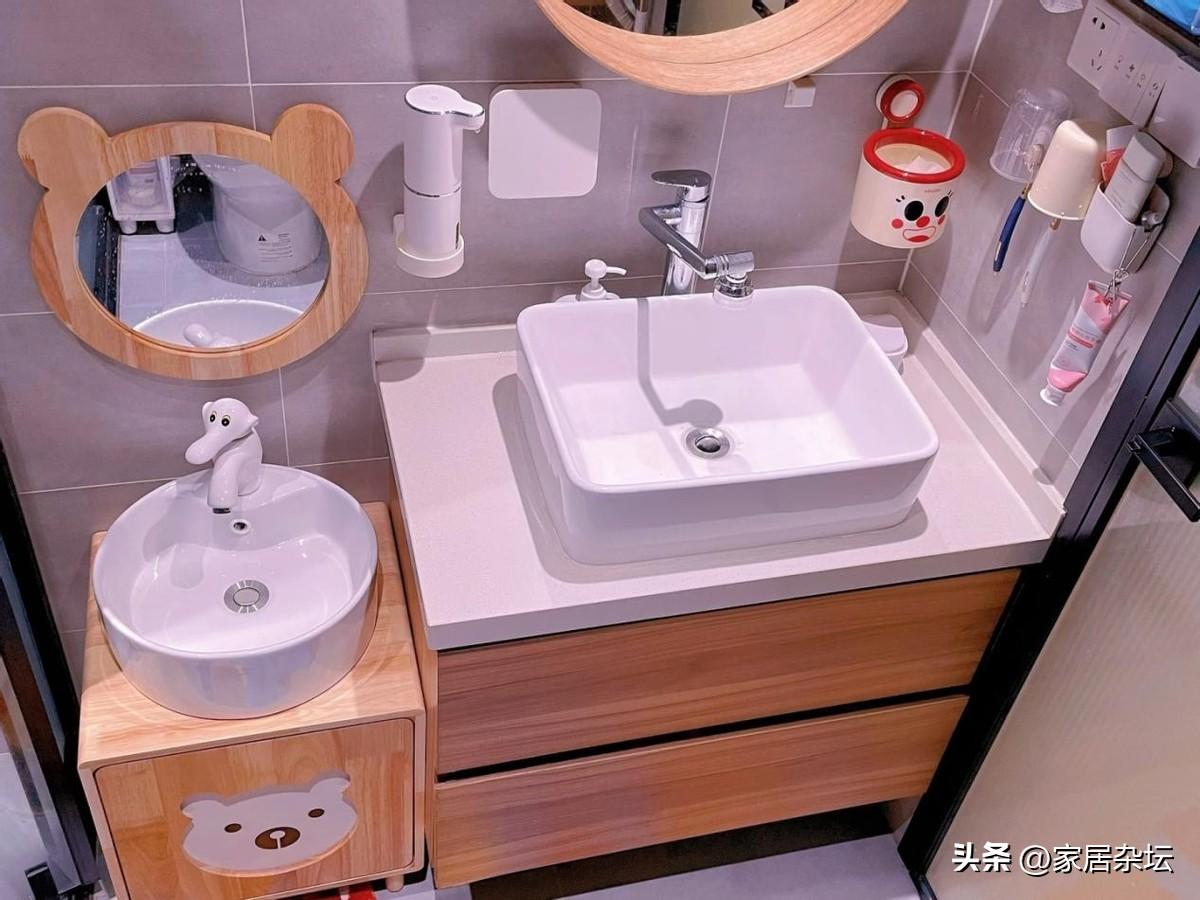 兒童洗漱區,一定要預留改造的空間。因爲隨着孩子的成長,可能需要調整檯面或者是更換部件,這一點大家千萬不能忽略。
