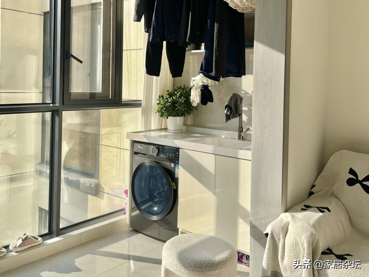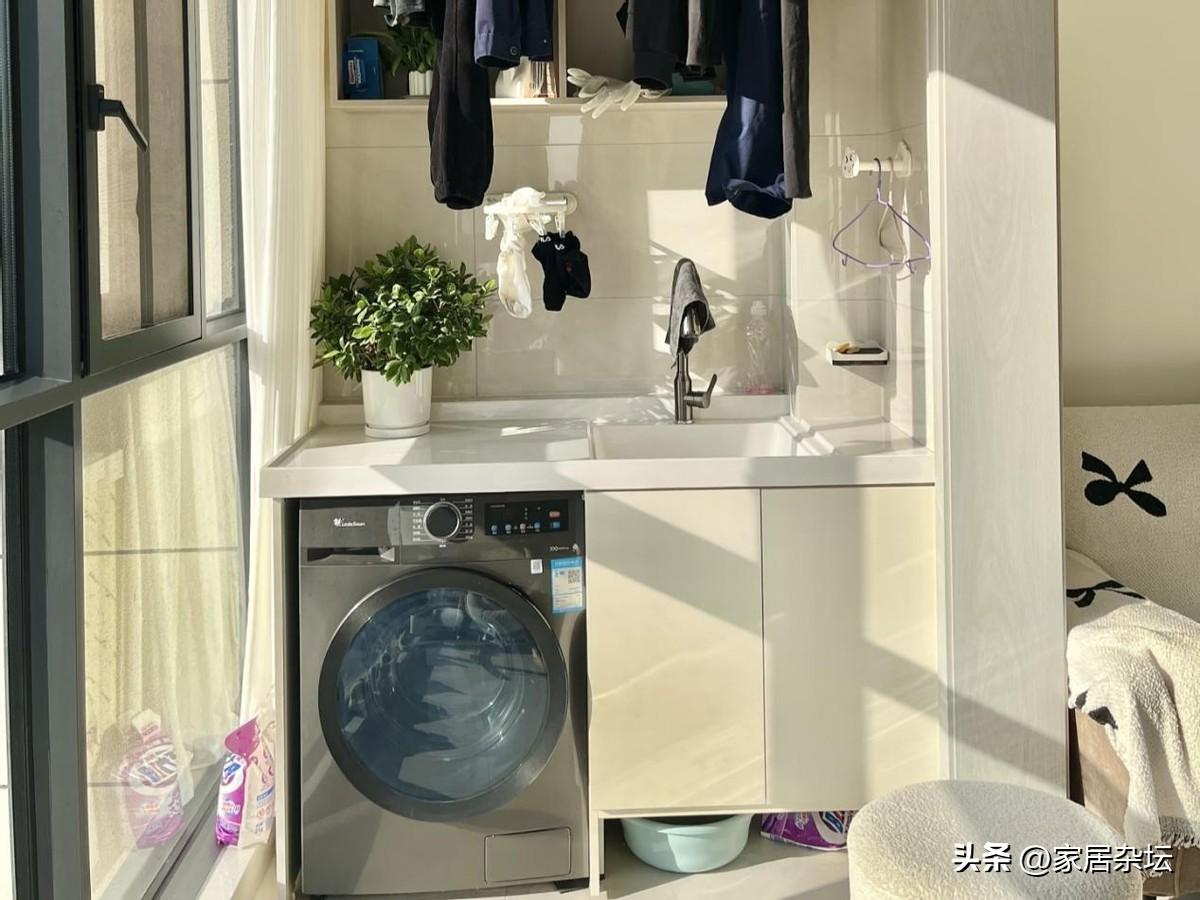 陽臺洗漱區,一般選擇的位置就是南向或者是東向的生活陽臺。上午一般有充足的自然陽光,而且要具備上下水,還有可以改造的可能。