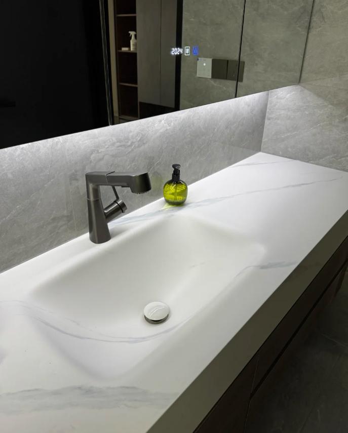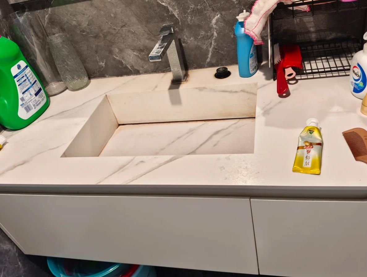 這並非誤導,也不是胡說,而是無數人的教訓。有太多的人在這上面踩坑了。而且這種巖板盆還非常難清潔。你以爲是巖板一體盆,實際上很多都是直接粘貼上去的。
