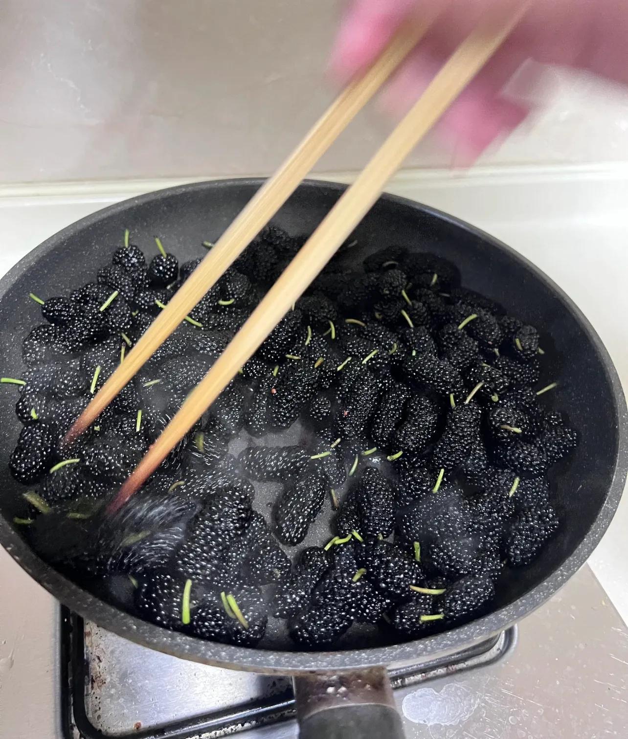說說果醬怎麼做:先把桑葚洗淨去蒂,接着在鍋裏放入桑葚和糖,中火全程30-40分鐘,熬到濃稠即可,關火前五分鐘可以放點檸檬汁,全程記得攪拌,避免粘鍋。