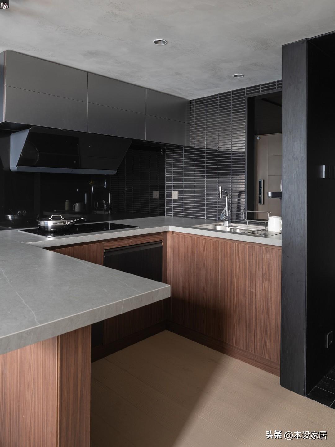 廚房和吧檯的組合設計,節省空間,做好的飯菜轉身就能上桌,十分方便。