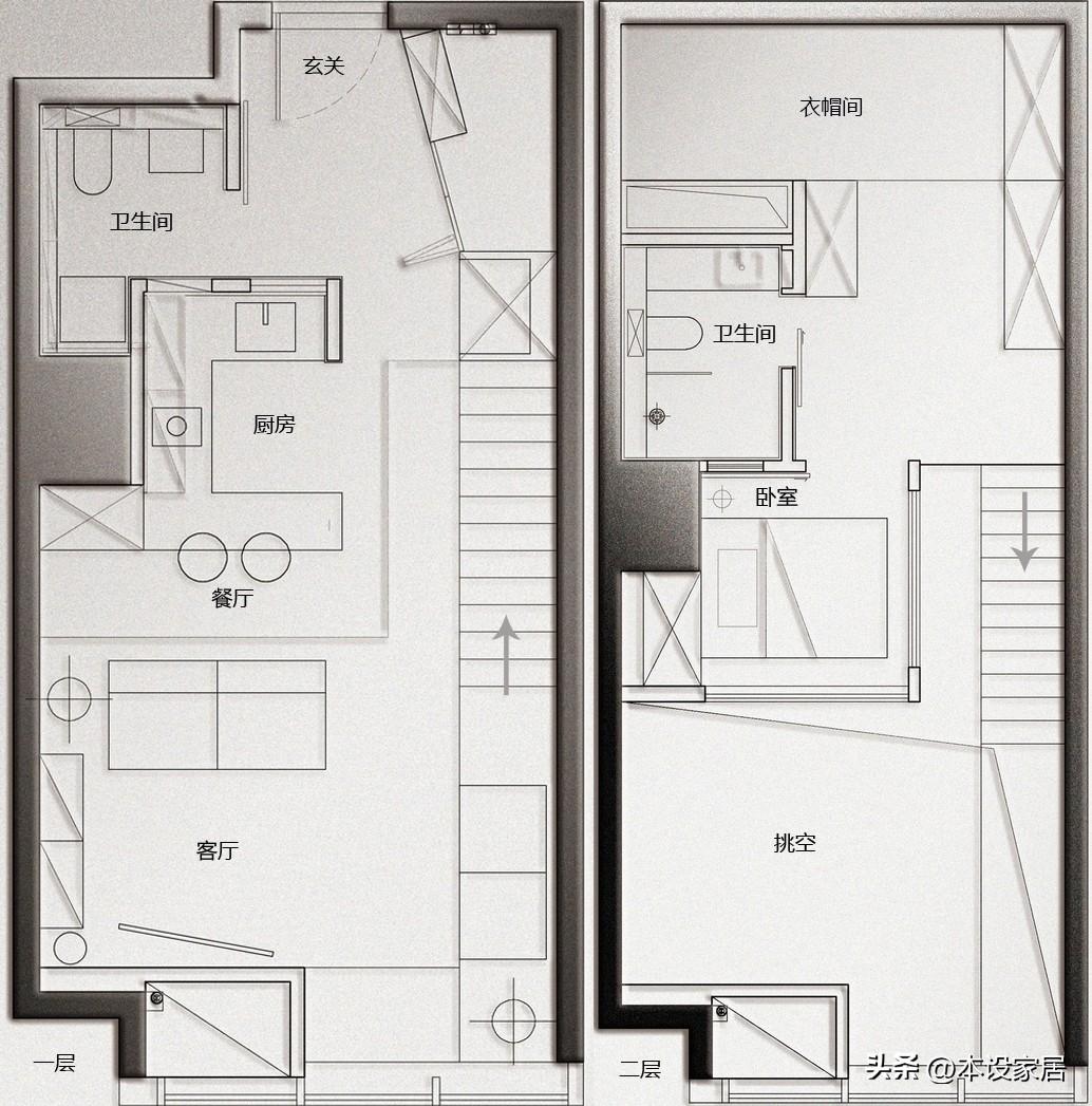 武漢48㎡毛坯房,改造後變成兩室兩衛的複式豪宅?