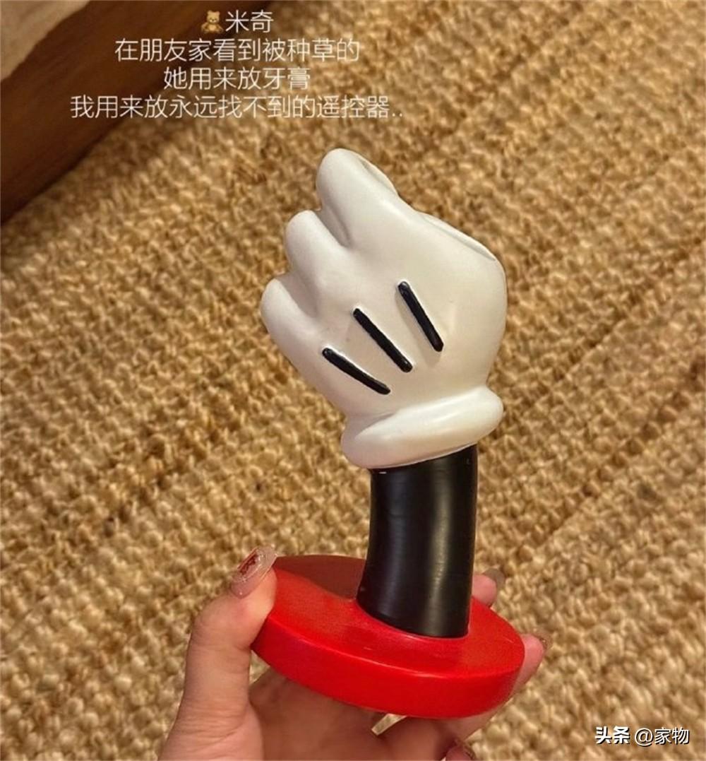 其造型就是米老鼠的手臂,剛好留出了一個握拳空間,可以放各種型號的遙控器,平時放在茶几或電視櫃上,既可以妥善收納,避免亂丟亂放,又能起到裝飾效果,一舉兩得。