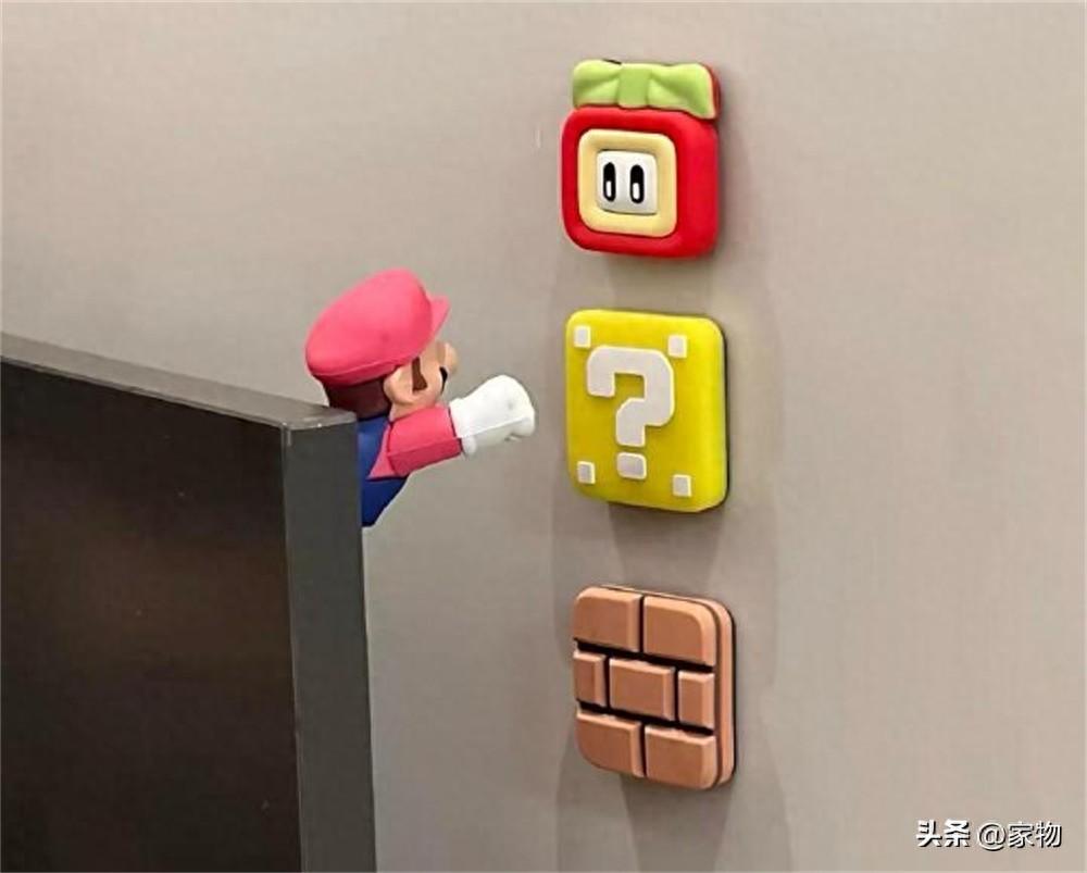 一個馬里奧主題的門把手+防撞貼,馬里奧舉拳的小玩偶可以當做門把手,貼在家裏任何一處櫃門上,而問號、磚塊、箱子等小方塊,則是一個小小的防撞貼,正好對應遊戲中馬里奧頂箱子的場景,真的是又實用又有趣,值得買。