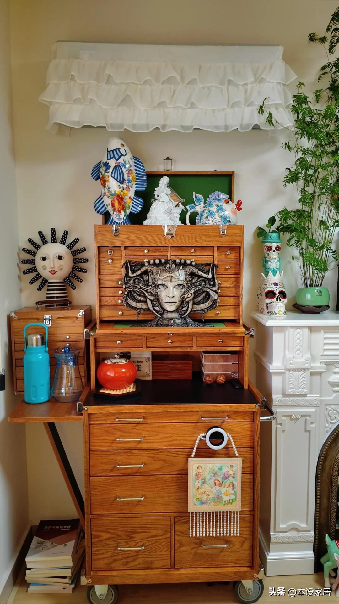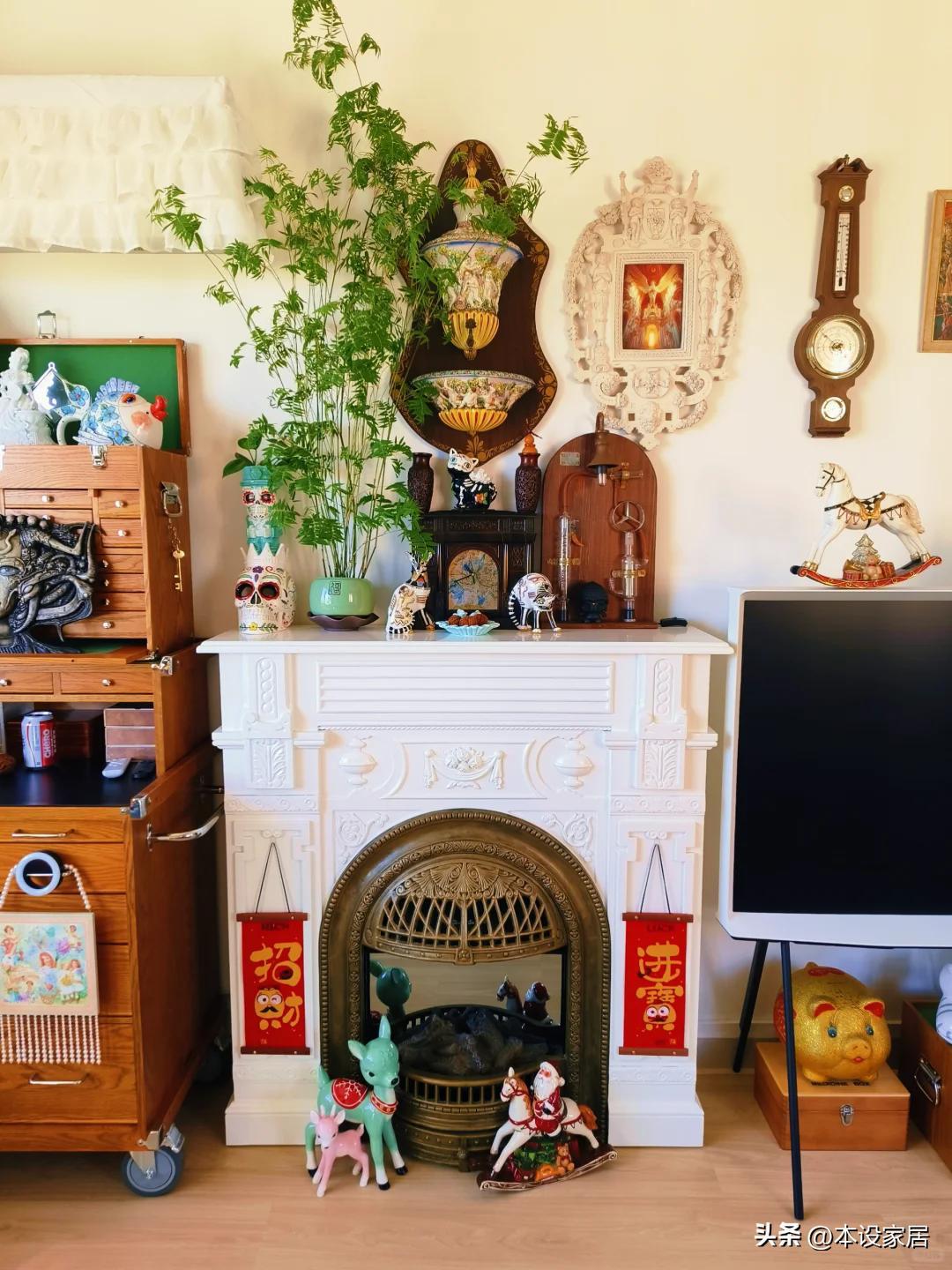 鏡頭一轉,被法式壁爐驚呆了,再加上這些個性的裝飾品,真的是越看越喜歡,將來新房裝修,也要學着裝。