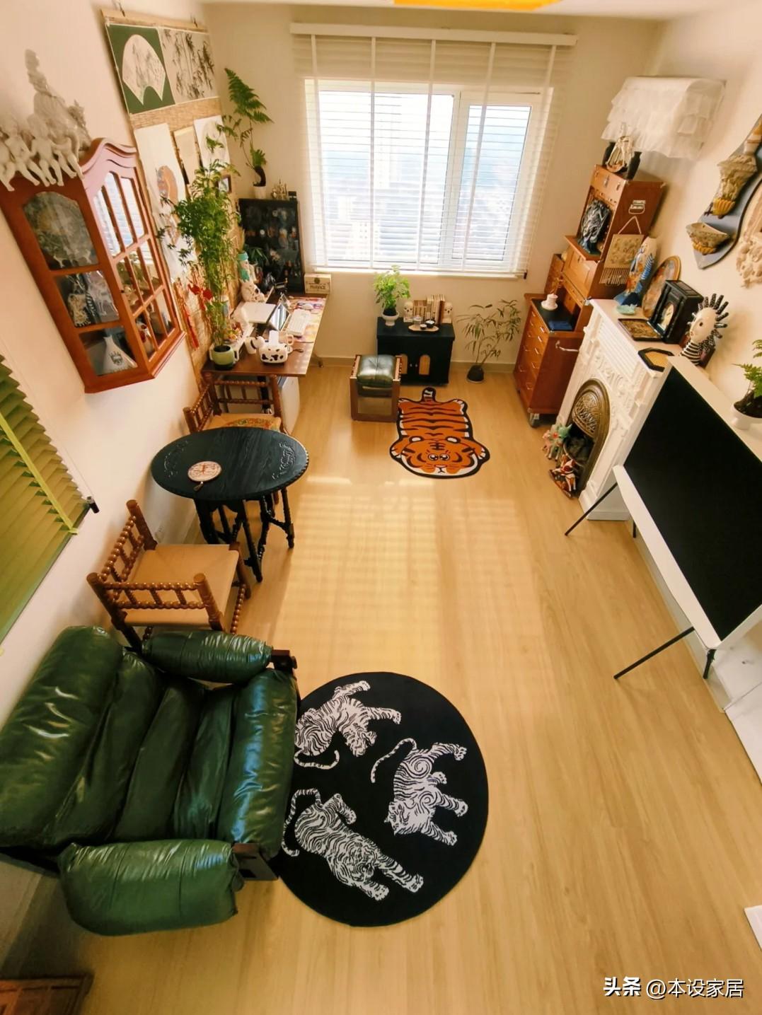 全屋硬裝很簡單,以暖白爲主色調,局部融入原木元素,綠色做點綴,再加上中西合璧的裝飾品,每一個角落都讓人震驚。
