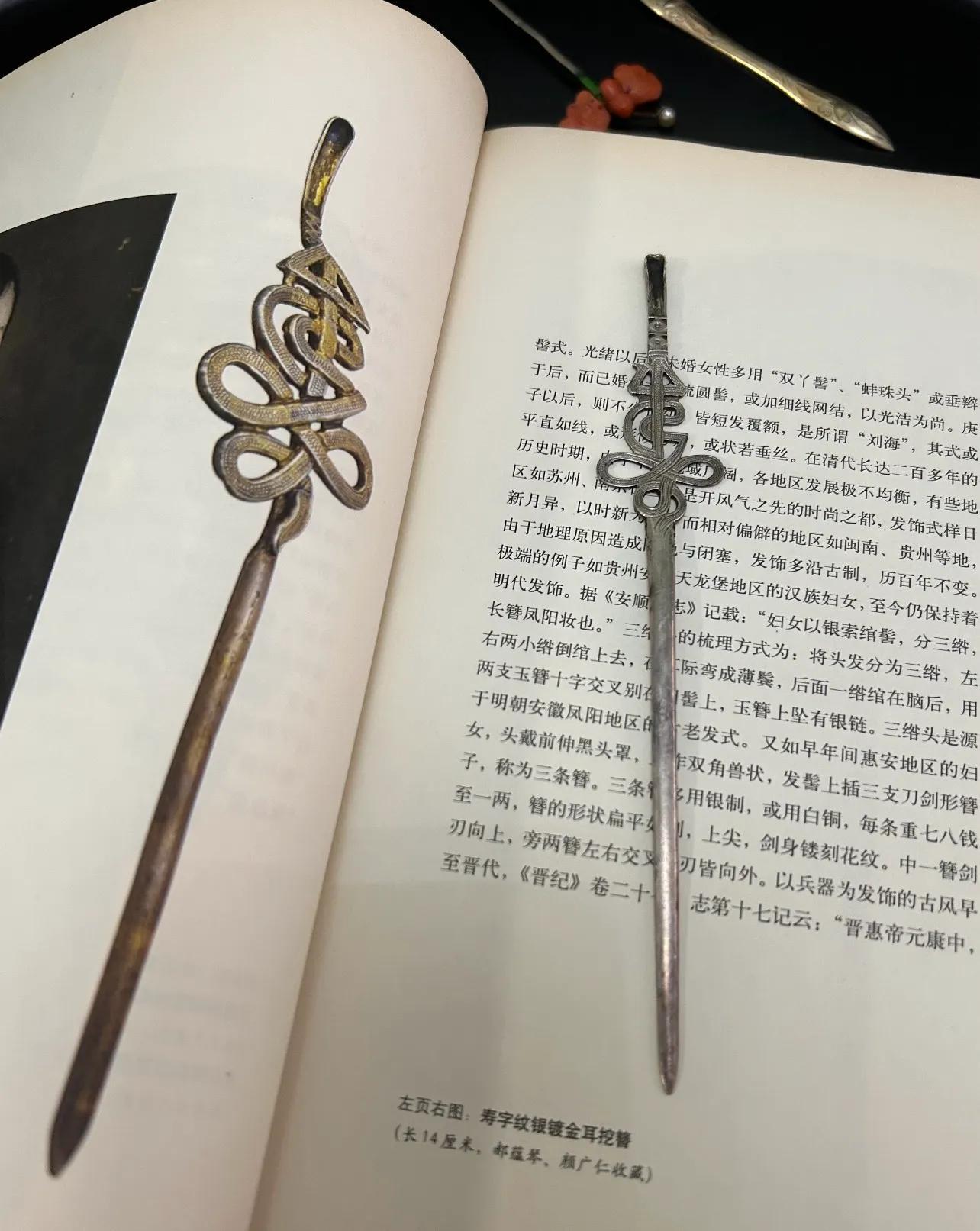 當然,更幸福的是把玩這些銀飾,比如:這個壽字耳挖簪就很有意思。