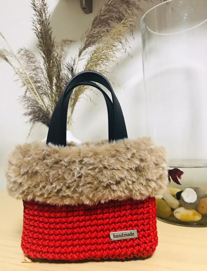 給自己鉤織的手提包▼
