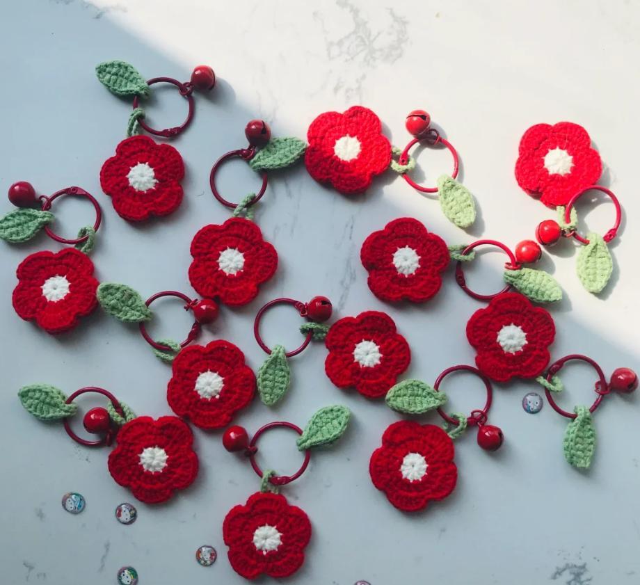 一個個小紅花,就這樣鉤出來了!