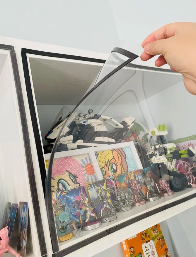 (已經使用一年,pvc板看起來跟新的一樣,太實用了,現在娃的積木、手辦天天干乾淨淨,再也不用我蹲那擦灰了!)
