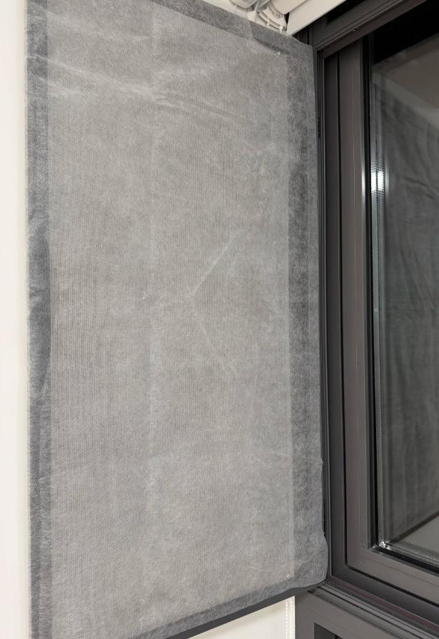 「網友@楊小姐的理想生活」直接網購了超薄的一次性無紡布,然後用工字釘釘在了窗戶上。
