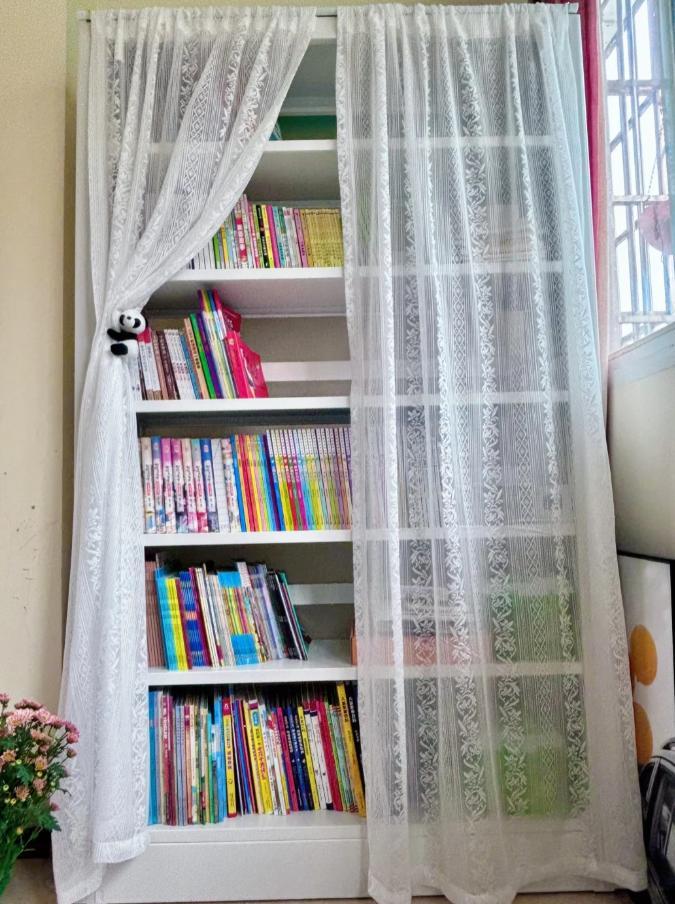 四川一位網友也是,因爲自家的書櫃安排在了陽臺,挨着窗戶,所以避免不了灰塵。同樣也是裝了一個簾子,你看,不僅好看,而且還特實用!