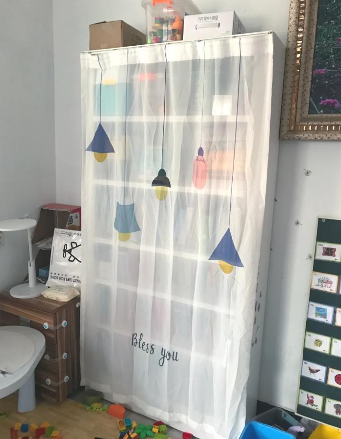 像上面網友這樣,直接給開放式的書櫃,安裝一個簾子就可以了!