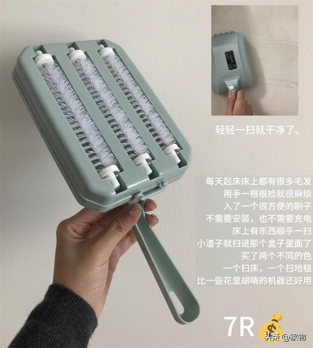 看起來複雜,其實就是三個滾刷+一個收集盒,比普通掃牀掃帚直接掃到地上來說,它可以在滾刷的同時,將頭髮和灰塵毛絮都收集到盒子裏,掃完直接倒掉就行,無須二次清潔,用起來還是挺省心的。