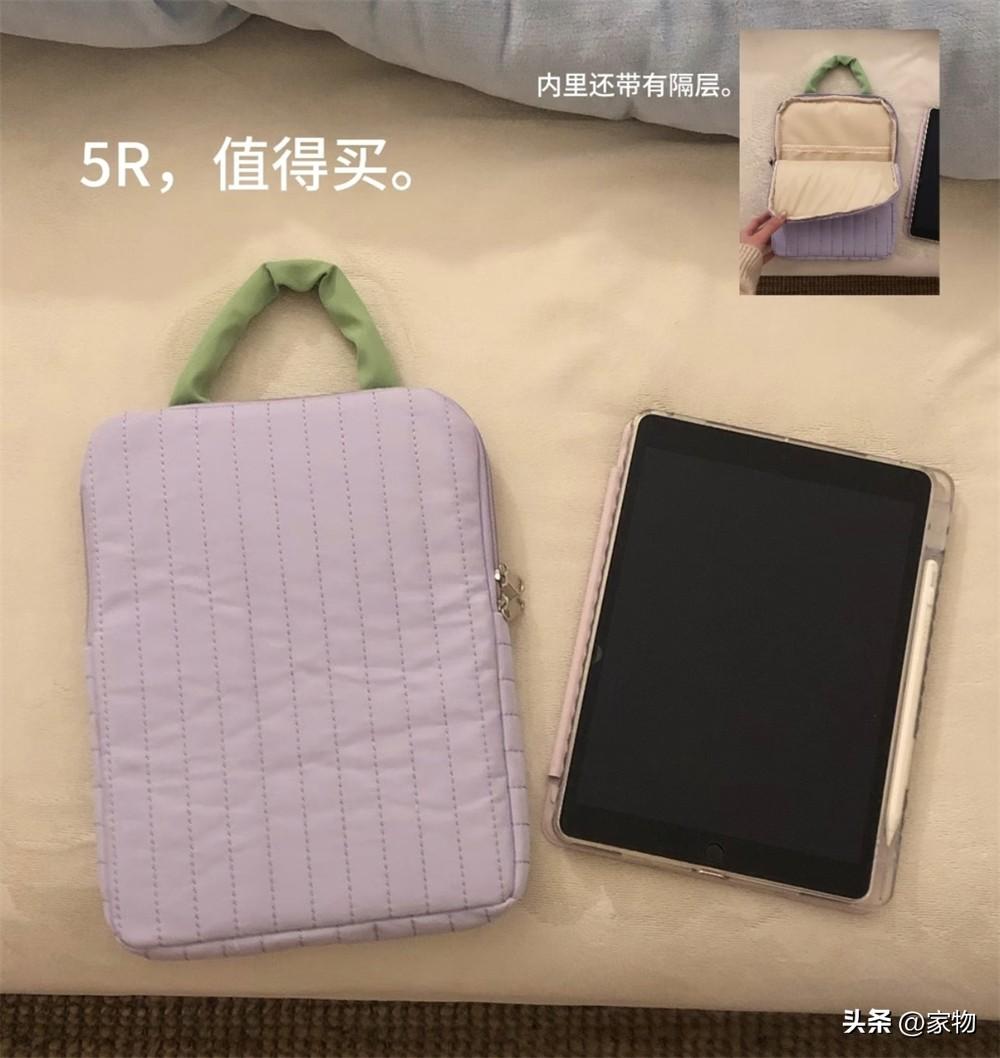 比我小pad尺寸再大一號的機器也能塞進去,內裏還有隔層放筆、充電線等物,因爲料子足夠厚實,防磕保護效果很不錯。