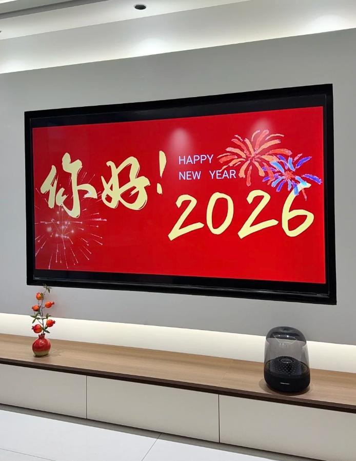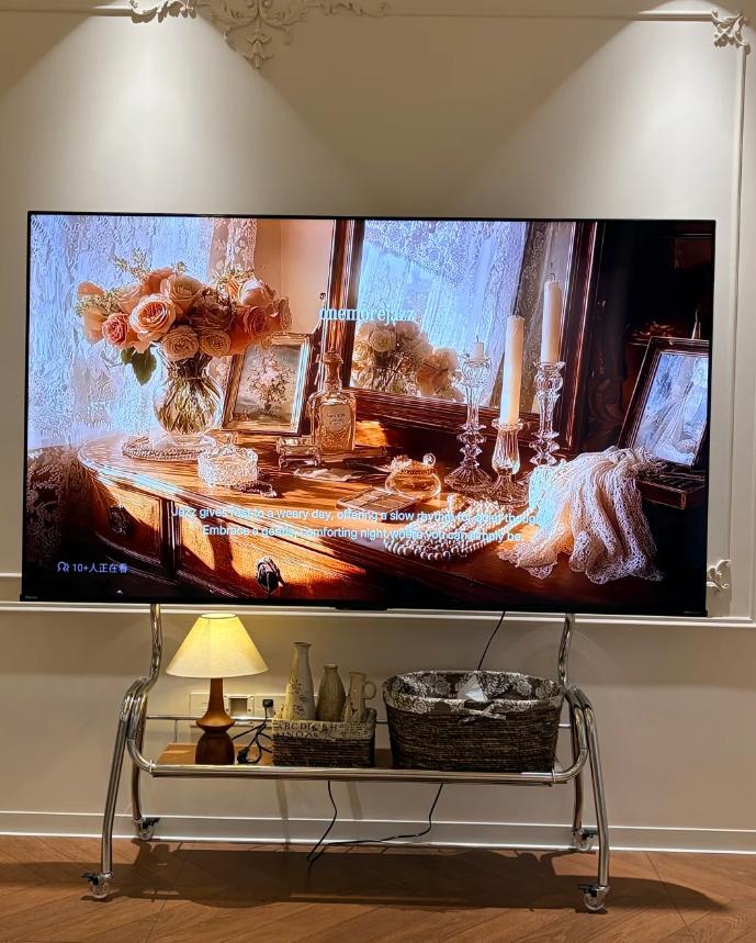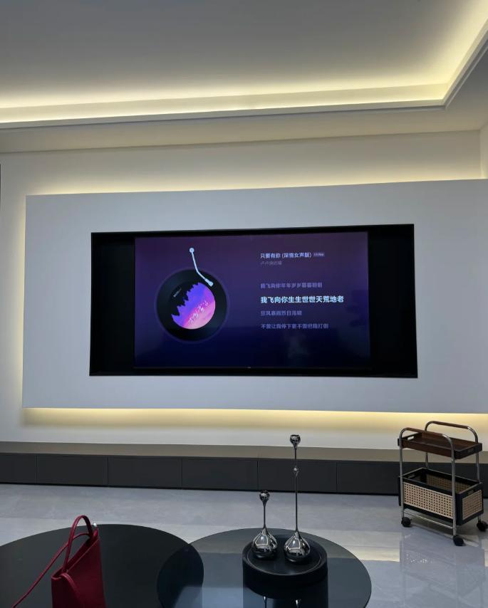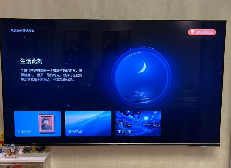 簡單設置一下,把黑色屏幕換成喜歡的壁紙,客廳的氛圍感立馬就出來了!