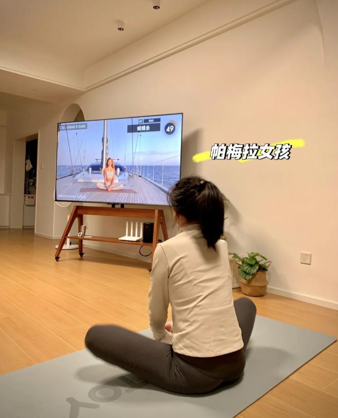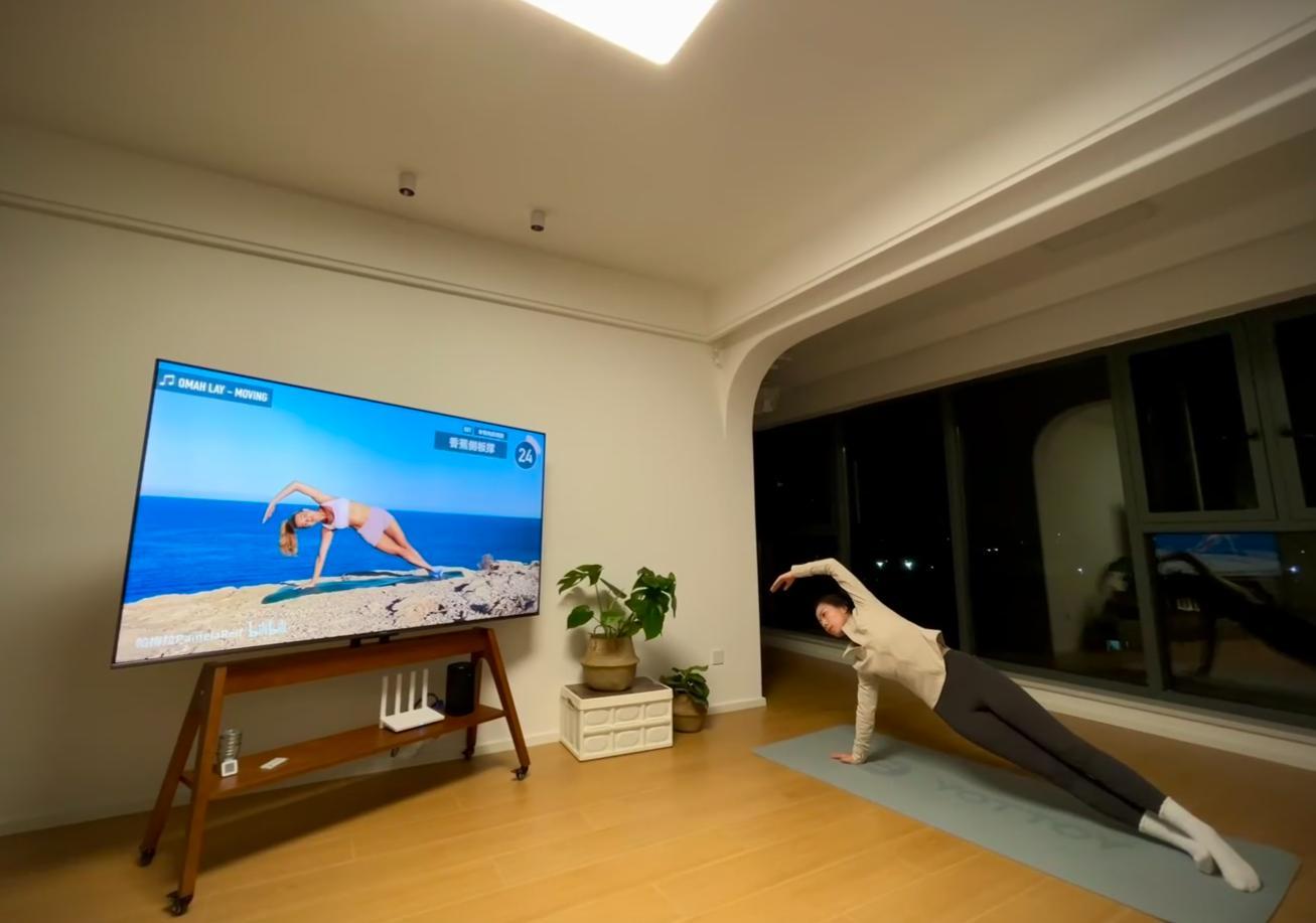 江西的一位小姐姐,直接把電視機當成了健身顯示器,這大屏,確實值得點贊!