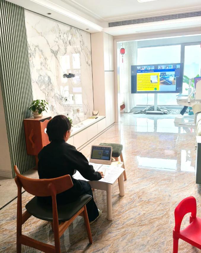 這樣上網課,距離遠了,能夠在一定程度上緩解用眼疲勞,說實話確實值得借鑑!