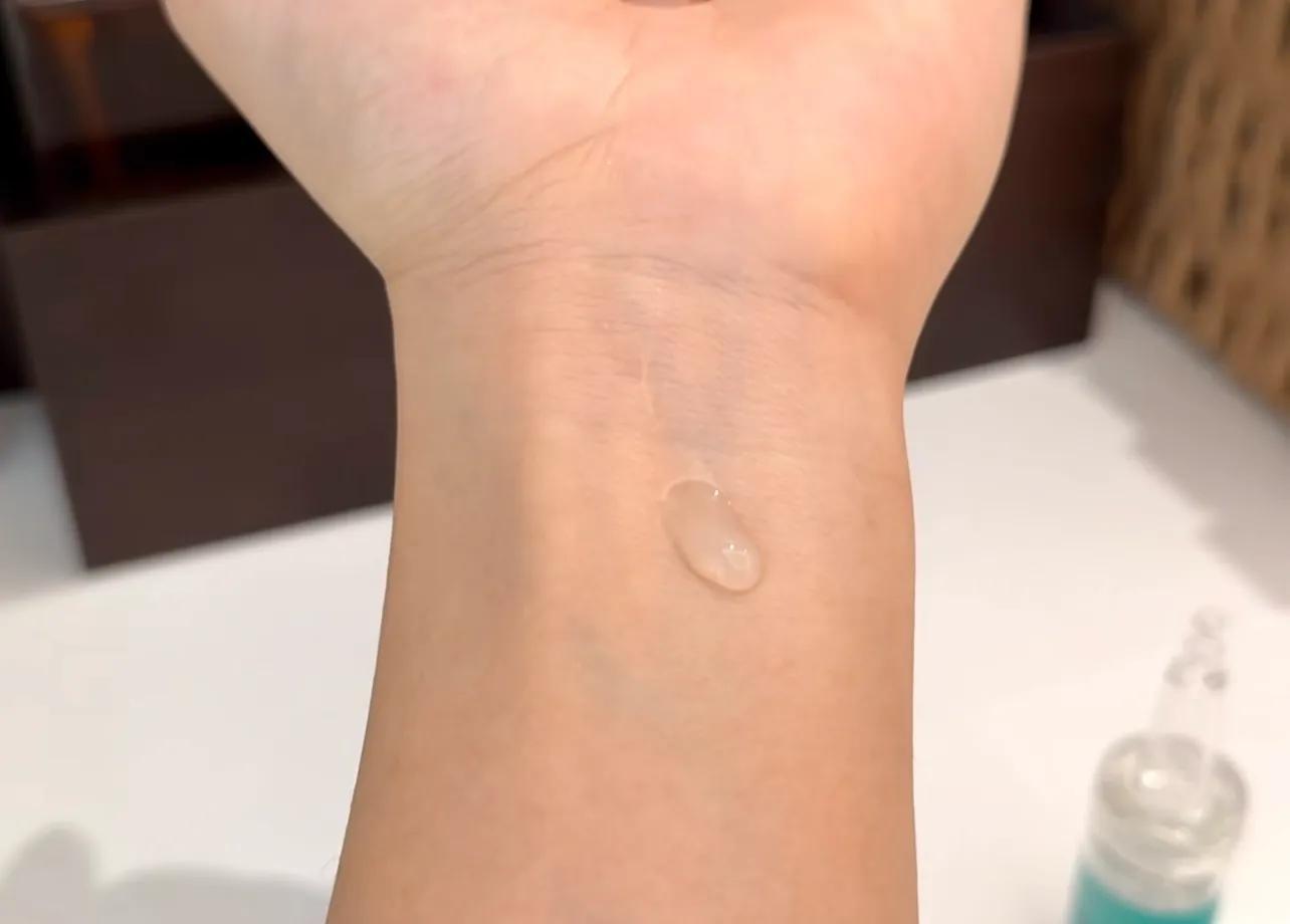 用法上,它是一瓶乾粉、一瓶溶解液,要冷藏保存,用的時候,兌一塊搖勻,順序在抹完爽膚水之後,質地是啫喱狀的,抹上類似蘆薈膠成膜的感覺,很好吸收。