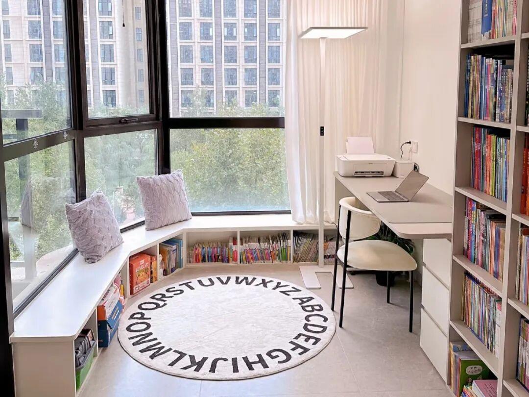 一個陽臺實現了早晨在這裏辦公,效率很高;下午在這裏喝茶,又無比的愜意。對於在家辦公或者有孩子的家庭,這種功能分區能夠很大程度提升空間的利用率。