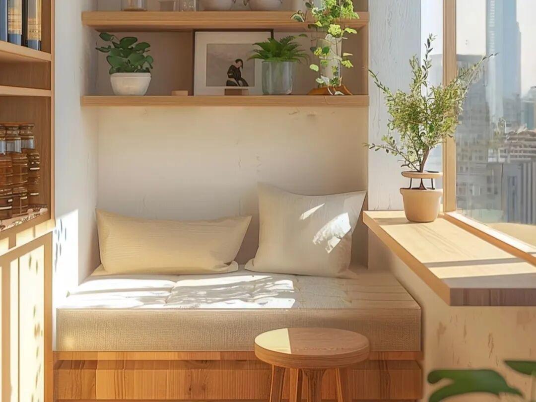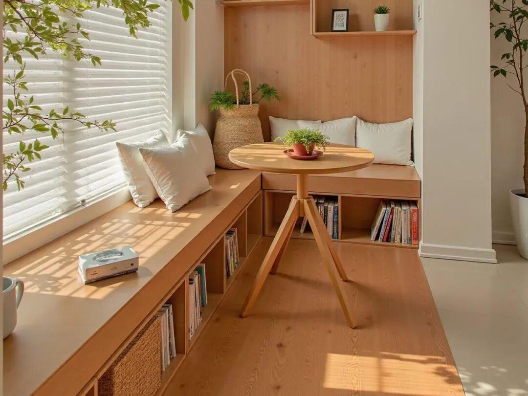 不管是在陽臺上曬太陽看書,還是朋友來家裏,需要額外的座位,這裏都能夠解決。特別是卡座下方,非常適合放不常用的雜物。