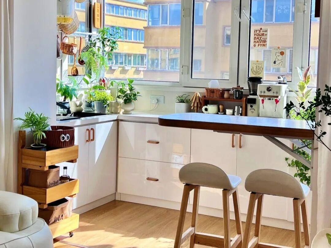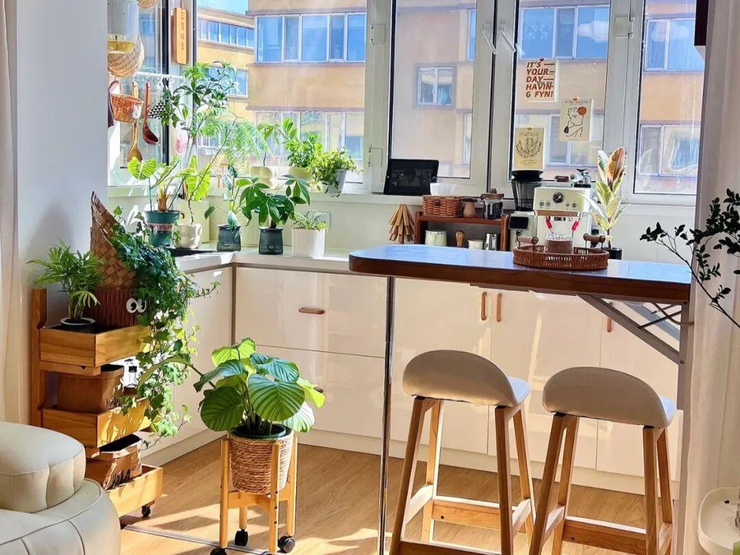 當然了,對於那些沒有獨立餐廳的小戶型來說,陽臺浪漫吧檯,就是一個浪漫的用餐區,一舉兩得。