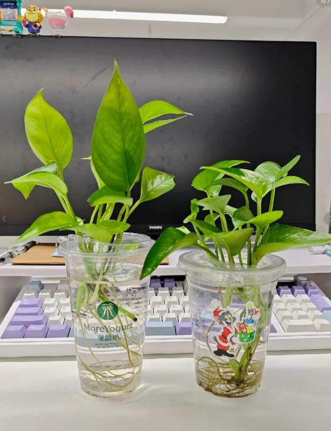 在家裏剪了一些綠蘿,加一次水能養大半個月,最近長了好多綠芽,好看又舒服的植物輕而易舉。全程不花錢,又是省錢的一天哈哈……