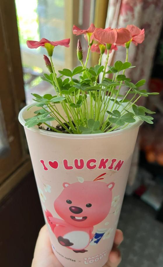 還有下面湖北的一網友,用咖啡杯養了酢漿草,看了一眼就愛上!