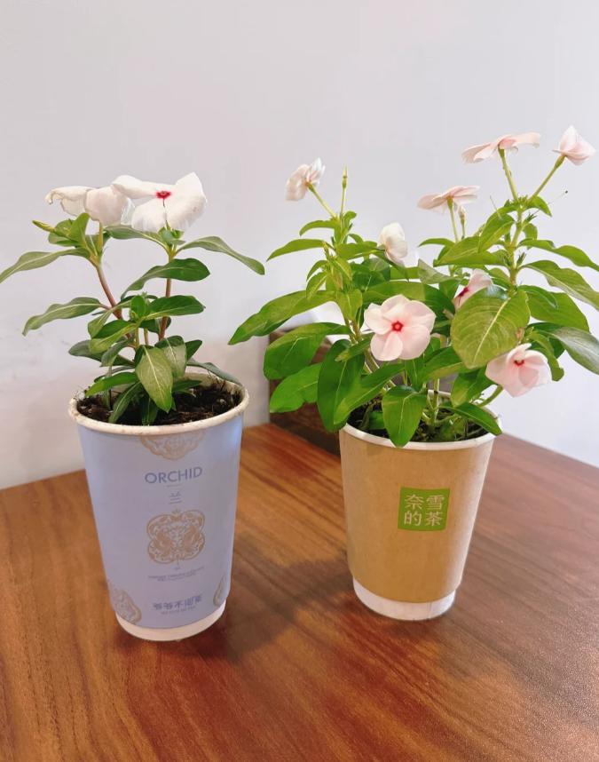 看看,廣東一女主,就直接用喝完的奶茶杯子養起了長春花。說真的,小巧可愛又治癒,太值得借鑑了!